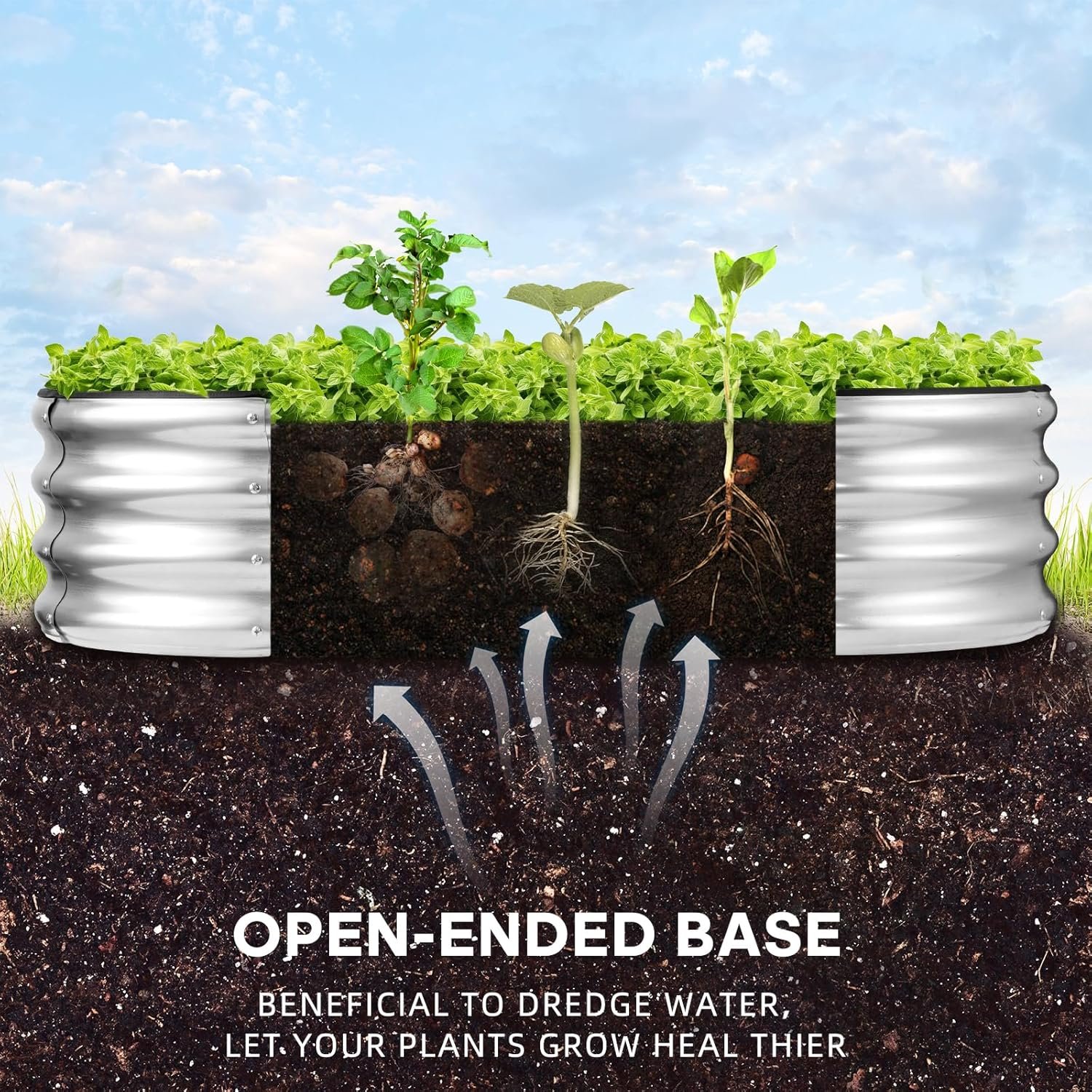 Durable galvanized metal garden bed set designed for easy assembly, rust resistance, and healthy root growth with its open-base design.